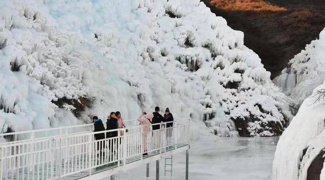 据了解,旧县镇的云瀑沟景区于近日迎来了冰瀑最佳观赏期,晶莹剔透的冰柱高悬陡峭的崖壁之上,在阳光的照射下透着淡淡的蓝色,尽显寒冷中的静态之美,吸引了不少游客前来“打卡”拍照。此外,龙庆峡冰灯嘉年华已进入“采冰季”,预计1月中旬启幕。
