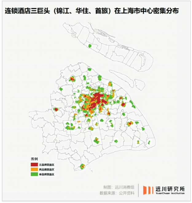 可以看到,吞并扩张后,核心地区成了连锁酒店的天下,如远川研究所统计,锦江、华住等连锁品牌的触角遍布上海市中心。而深圳商报调研显示,消费者推荐连锁经济型酒店的主要原因就是“地理位置”。