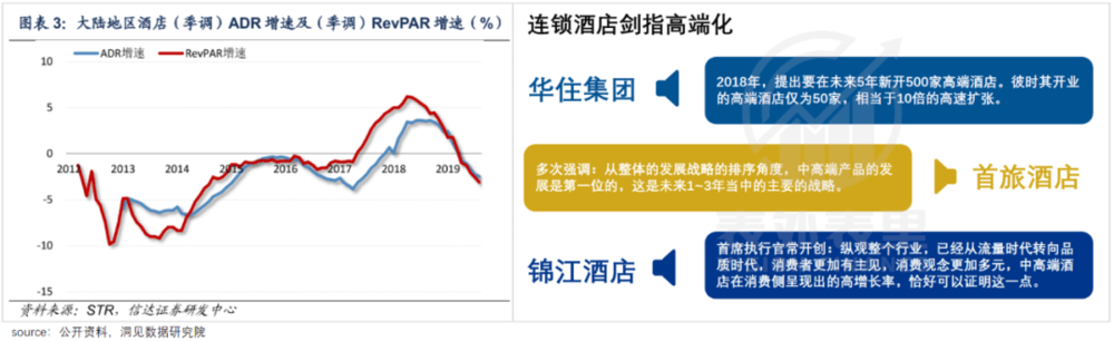 酒店老板显然深谙这一点。2018年前后,看到消费者越来越讲究住宿条件——单客房每晚收入(ADR)和单客房实际营业收入均高速增长后,连锁酒店顺势开始了轰轰烈烈的中高端化改造。