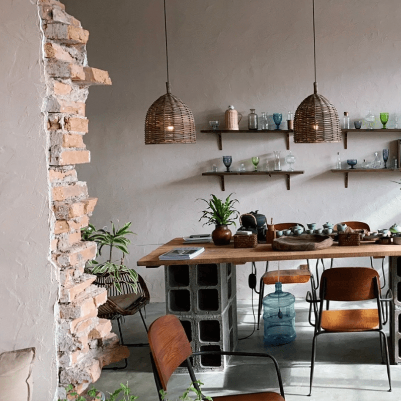 去金海湖的路上,很多人都会转弯去也行Cafe做停留。因为本身就是店主自己和家人居住、聚会的场所,所以自然地生出一种理想中的家的感觉 。青翠的山、清晰木纹主题的装修、桌椅、餐具自带日系滤镜。