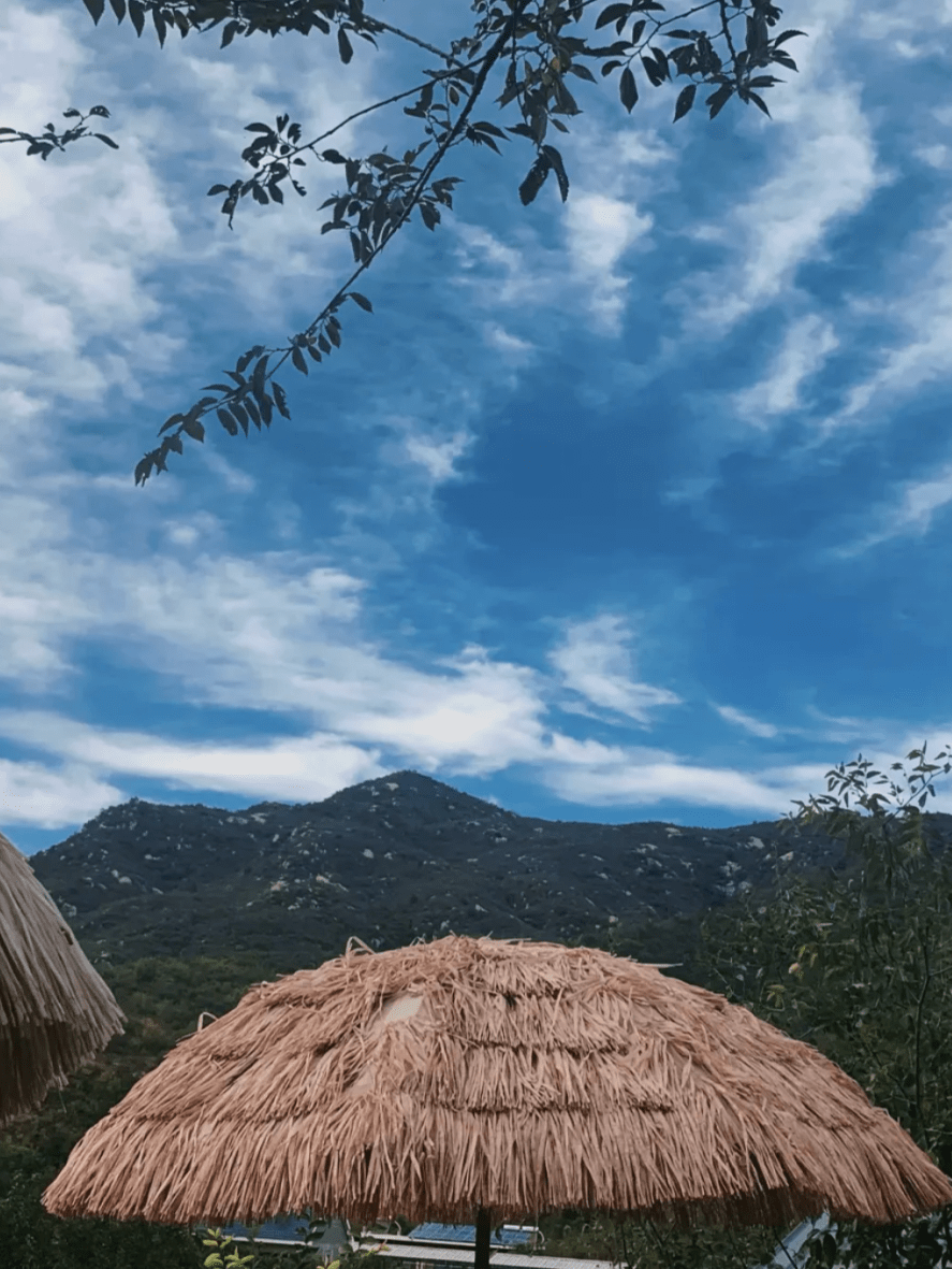 山景一流,北京郊区苍翠的大山在炎热的时候简直像个巨大的天然空调一样美好,虽然现在还倒春寒,但是那种奶油绿的草坪、干净的白砂搭配上漫山的轻松,让人可以踏实收获满满的放风感。