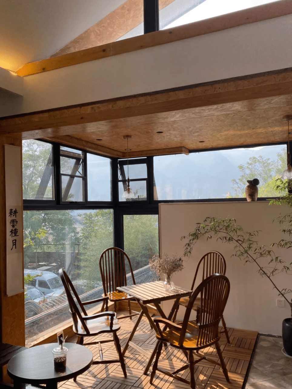 又是一家用繁体字的郊外咖啡店,用干净的日式森系的陈设、自然的山景和精致的甜点组合出游客心中理想的样子。