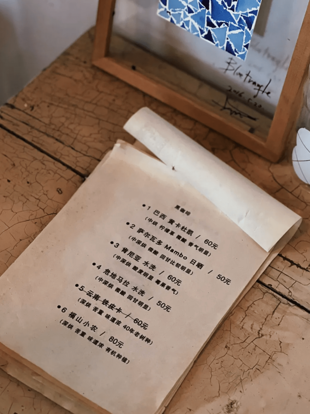 和我们想象中的郊区咖啡店不一样,非常简单的陈设,但是旧旧的木质家具有种让人沉静下来的力量,和店里醇厚的咖啡风格一致。虽然没有那种让网红出片的郊外小院子,店里座位也很少,但是人少安静的时候真的很舒服,老板每天上午烘豆子,下午1点到5点营业,千万别跑空。