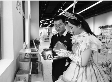 工作人员向游客介绍文创产品。 三秦都市报记者 马昭 实习生 昝肖婷 摄