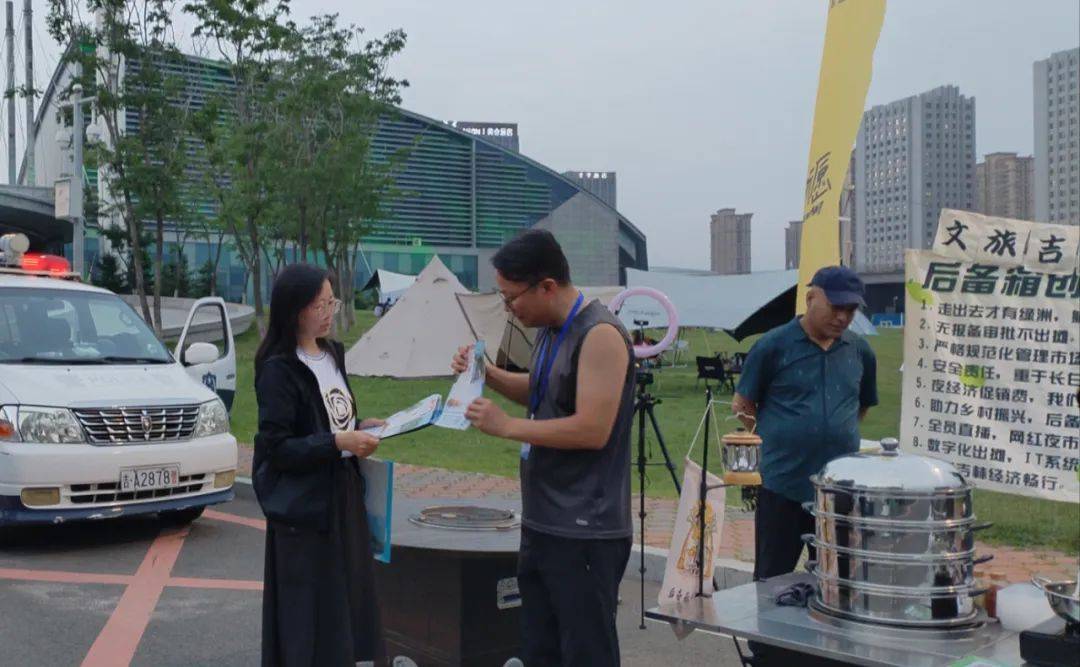 当天下午,蛟河市文旅相关人员在推介活动现场内外发放了近千份蛟河夏季旅游景区景点宣传资料。