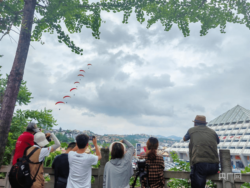 到仙女山度假的游客有福了。近日,“中国红旗飞行队”7名动力伞高手编队出现在重庆市武隆仙女山国家级度假区游客接待中心上空,红色的伞翼在蓝天白云的映衬下显得格外美丽,为游客朋友表演了一场精彩的空中飞行秀。据了解,飞行表演将持续至7月17日,每天四场。