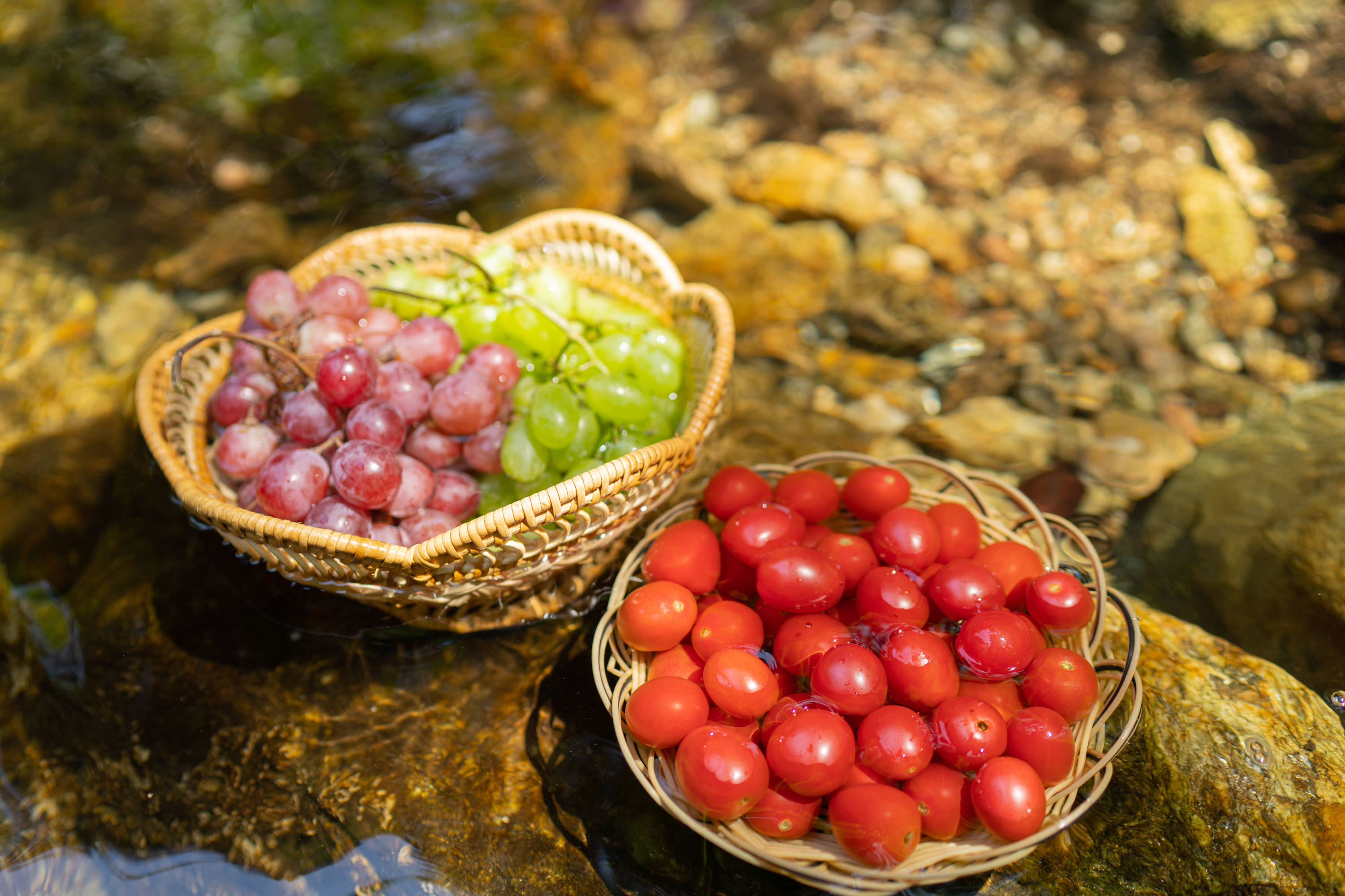 采用了一下古老的水果降温法,让溪水成为它们的天然冰箱
