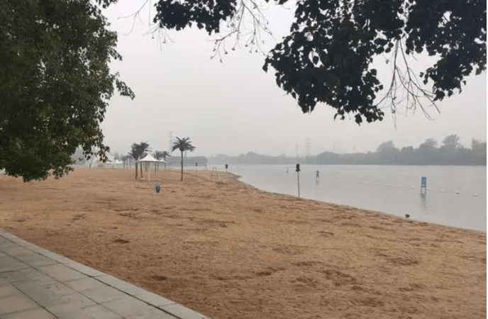 是淇河流经鹤壁市区一段的城市沙滩,沙滩长510米,宽110米。沙滩外即是鹤壁城市的艺术中心、金融大厦、联合大厦等建筑。市民夏季可在此游泳,做沙雕、放风筝、踢沙滩足球。高耸的城市建筑、翠绿色的淇河、沙滩和融为一体,展现出一幅优美的画卷。