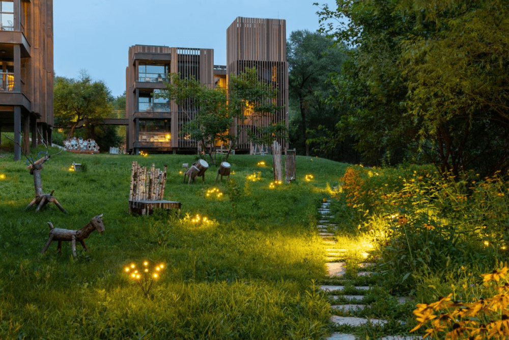 景区在各处设置了各类打卡装置,游客中心的夏日主题场景、电话亭、落日余晖等高颜值的时尚吸睛网红打卡装置,满足游客拍照打卡需求,帮助游客在古北水镇的游玩之旅留下美好印记。另外,景区安装了雾森系统装置,运用高科技手段提供独特的消暑体验。景区步行道两侧的萤火虫灯装置为夜游的游客体验增添夏日专属氛围。