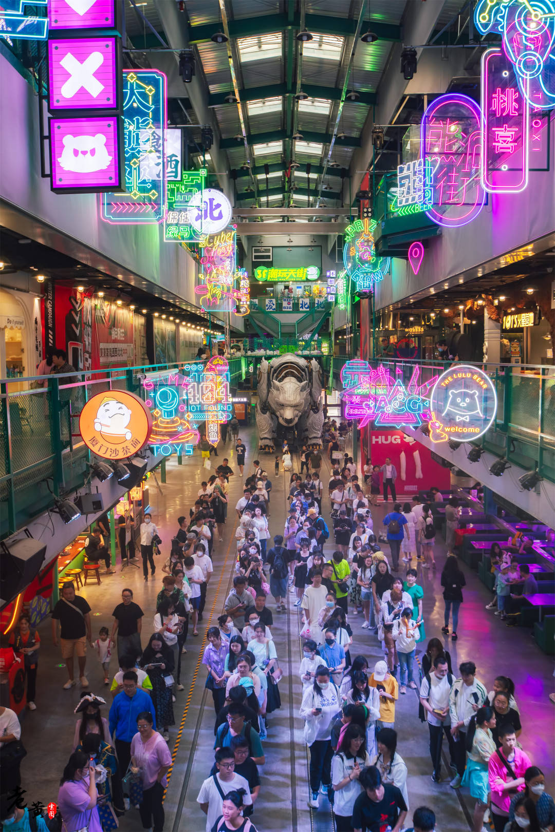 走进熊洞街,这里可谓是灯火辉煌。首先映入眼帘的是各式彩色的招牌,颇有一些港味。其空间内仍然保留了工厂的loft风,符合当下年轻人的喜好。而且加入一些朋克的元素,更是把年轻人的沸点点燃!