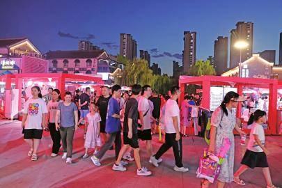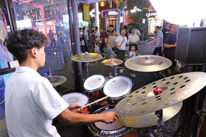 夜晚品醇香啤酒、享花样美食、欣赏音乐演奏、人们齐唱高歌,烟火气与时尚范交融……