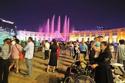 泉城广场的荷花音乐喷泉,已成为济南一个重要的夜间景观。每晚音乐响起,喷泉随音乐的旋律,时而舒缓,时而激昂,吸引了大批纳凉的市民。