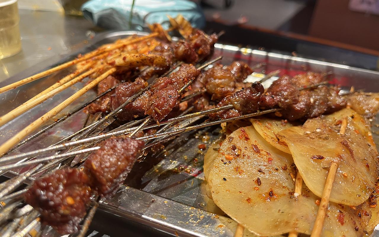 在南昌你同样可以吃到地道的淄博味道,小饼、小葱、肉串、烤炉,小桌子、小马扎,基本上把淄博烧烤完全进行了复刻。看到家门口的淄博烧烤,我自然也要去体验一番,看看味道到底怎么样?