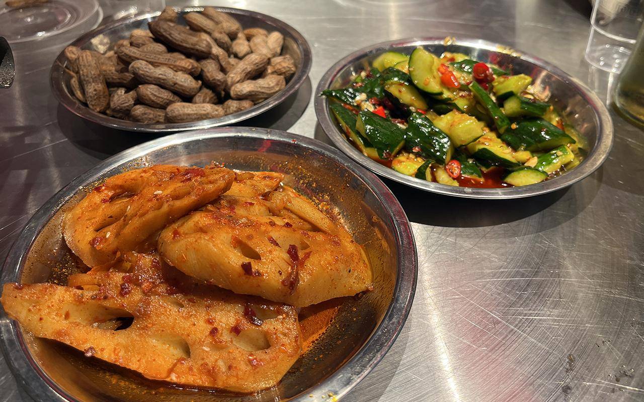 因为人比较多,所以等待的时间稍微有些长,不过这个也能理解,毕竟是用餐的一个高峰,不过在上烤串之前,还上了三盘凉菜,分别是水煮花生、凉拌藕片、还有拍黄瓜,这个味道比较不错,也比较符合我们的口味。