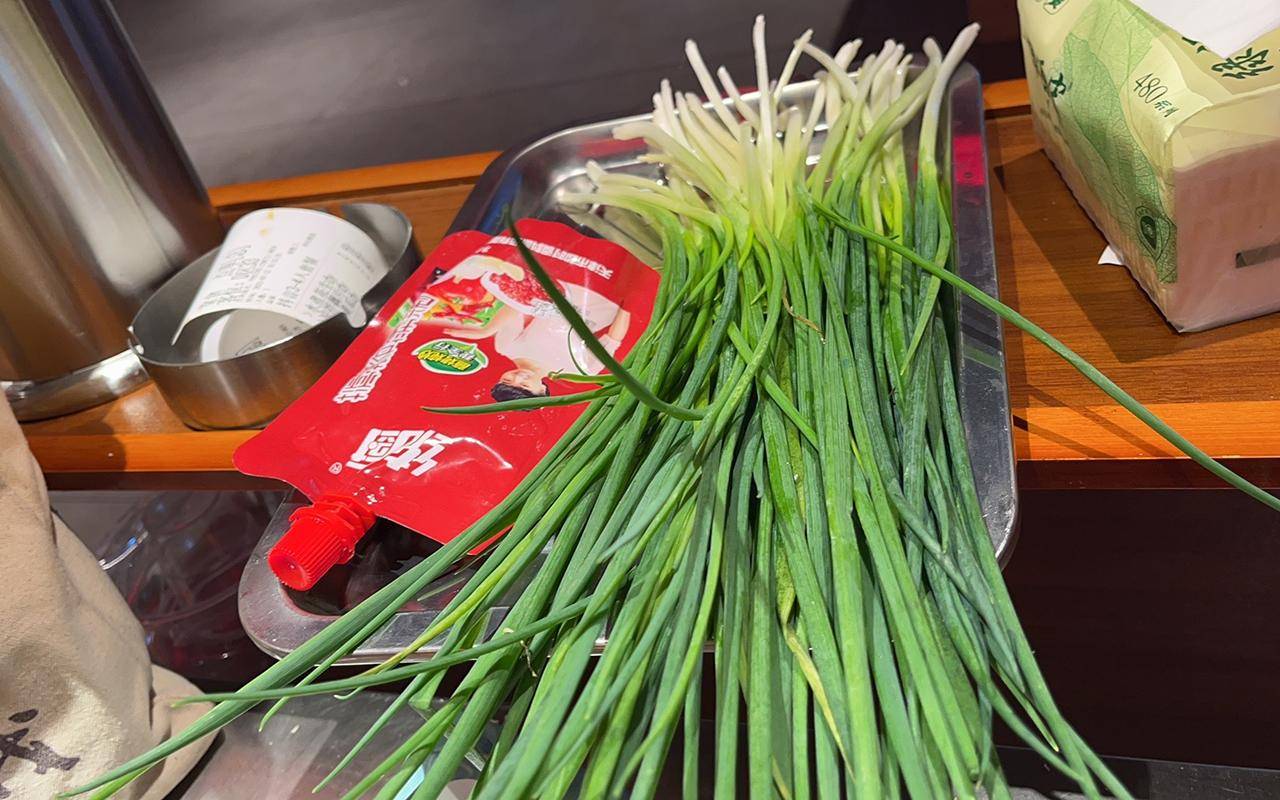 其次,就是牛肉串,这个也非常的入味,吃的时候,来上一个小饼,然后饼上放点香葱,来上一点香辣酱,接着把牛肉串还有五花肉串放进去,拿紧之后,把它往外面一拉,这个就是变成了简易的卷饼了,然后吃上一口,香葱味、牛肉味还有饼的香味交织在一起,别有一番味道。