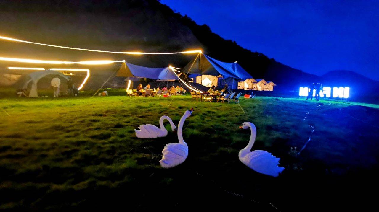 夜幕降临,营地管家已经准备好了海鲜烧烤,鲜鱼、鲜虾,各种说不上名字的小海贝,都来自芸苔文旅自有基地养殖基地,或者是渔船直供,那种鲜活口感让你的舌尖充满了内啡肽的愉悦。还有五花肉和把冰啤酒,大口海鲜大口烤肉的快乐你来了才能体会。晚上,皎洁的月光下,管家升起篝火,众人热舞狂欢,嗨歌到天亮。