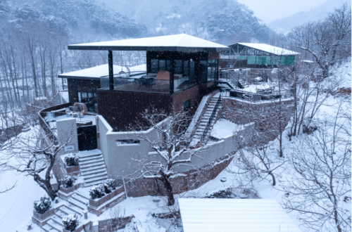 峪宿的设计则充分挖掘土地特质,使用的材料和颜色提取自山景中传统建筑形式,采用革新建筑语汇进行表现。自然融入于周边环境,形成浑然天成、得天独厚的私汤院落。峪宿拥有7个独立院落,近30间客房的民宿集群,每个房间都是一个独立的空间,靠山环景,可以观赏日出、日落、植被、山峰。整个建筑在设计过程中,充分考虑了大自然的交相辉映,以大面积暖木色为主,采用极简主义美学设计,融入当地的建筑方言。在峪宿星空掩映下的超大落地窗前,抬眼便是长城蜿蜒于山脊之中,烽火台与山景尽收眼底,夜晚繁星触手可及。