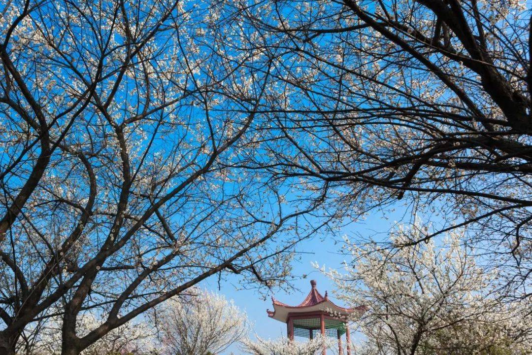 鸟瞰梅园,乡间通衢纵横,清新空气中,梅园点缀在阡陌村庄里,四周鸟鸣啾啾,鸡犬相闻,既宛如清冽仙境,又不缺红尘烟火的暖意。