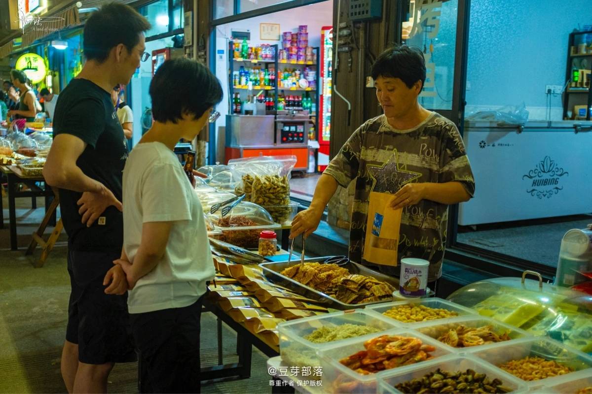 夜色朦胧,我们相约枸杞海鲜一条街,琳琅满目的海鲜让人看着就馋。于是纷纷上前,热火朝天地点着想吃的美食,各种各样的海鱼、海虾,甭管认识不认识,心动了就点上,肯定都好吃!当然各种海螺也要点上一份拼盘,拿来下酒最合适不过。所以嵊泗的夏夜,灯火辉煌,人声鼎沸,海鲜食物的香气与游人的笑声交相辉映!