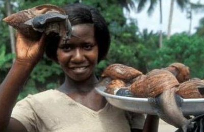 这张图片就是表姐朋友圈晒出的那种,这是她在非洲当地的一个朋友,她手里拿的那个东西其实是一种蜗牛,是非洲非常流行的一种食物,营养价值相当的高,表妹说她一开始也接受不了这样的食物,但是慢慢的也就习惯了。大家都可以看到,这玩意的个头真的非常大,看起来我觉得还是蛮恶心的,真的是难为表妹了,连这玩意都能适应。