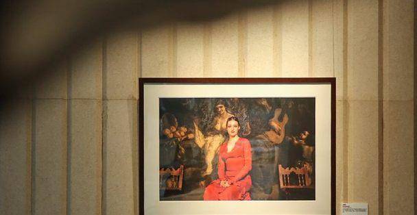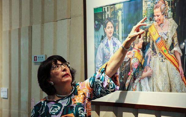 西班牙广州总领事馆旅游参赞吉奈丽达女士正在讲述梅生先生作品《法雅公主选举》,记录了瓦伦西亚举行的法雅公主选举,美丽的姑娘们身18世纪的传统服饰。