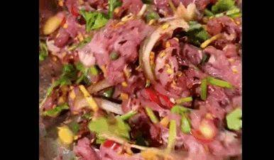 生瘪———干辣椒折耳根生牛肉刺身