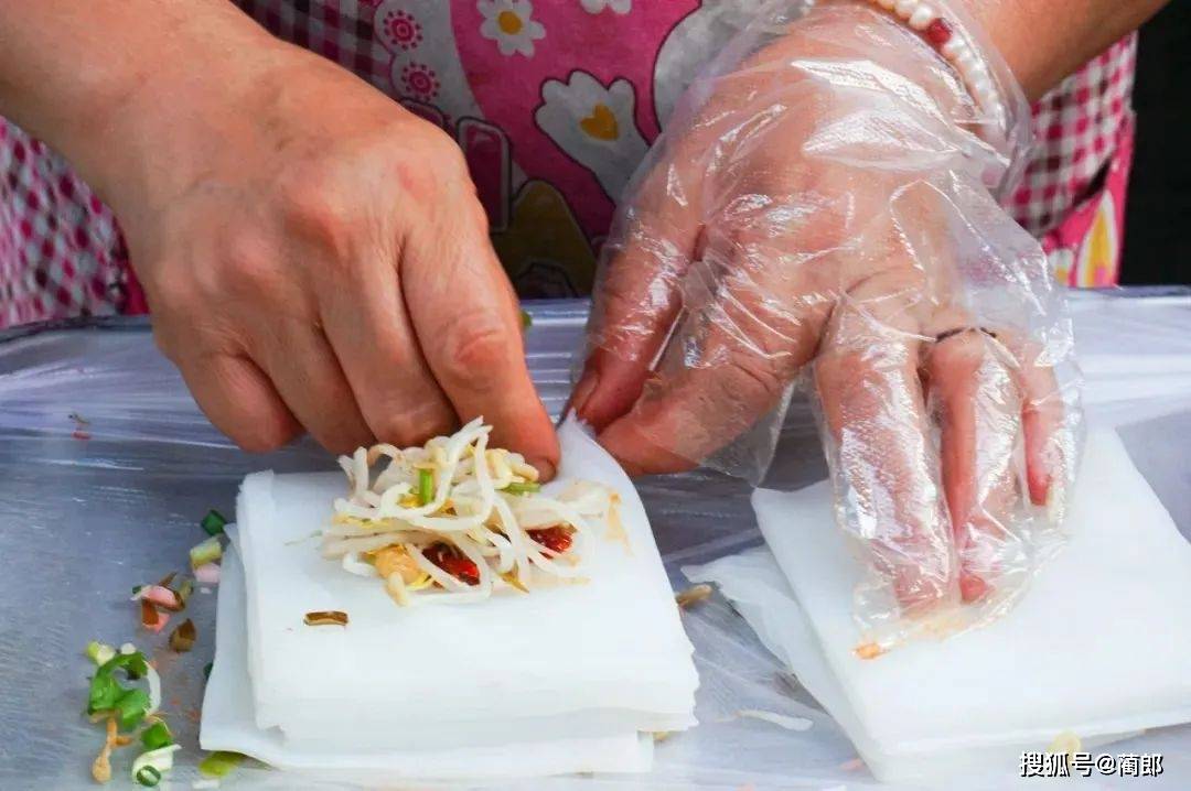 舀放到粉片内,包裹起来,便成。