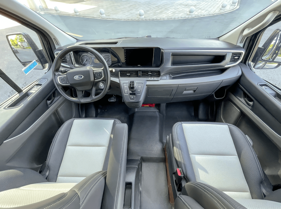 驾驶室采用了黑灰拼色方案,商务感满满,车辆配置有博士9.1ABS+EBD、多功能触控屏、倒车影像等设施及系统,保障驾驶安全。其中副驾驶可以向后旋转,与会客区的双人座椅形成一个更大范围的交互空间,无论娱乐就餐都很有氛围感。