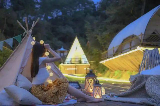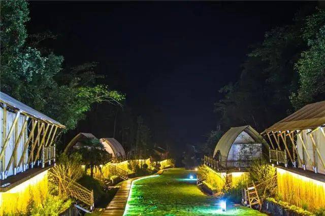 不管是金色阳光洒在帐篷营地的好晴天,还是夜幕降临灯光点亮的夜景,谁能想到这个有着童话帐篷的地方竟然就藏在杭州车程1小时的地方呢!