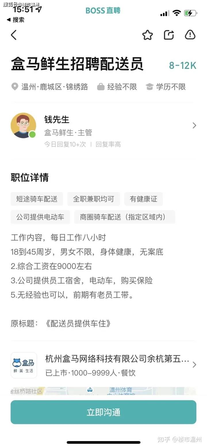 日前,某招聘平台发布了一则《盒马鲜生招聘配送员》的招聘信息,预示着盒马鲜生将要来到温州。