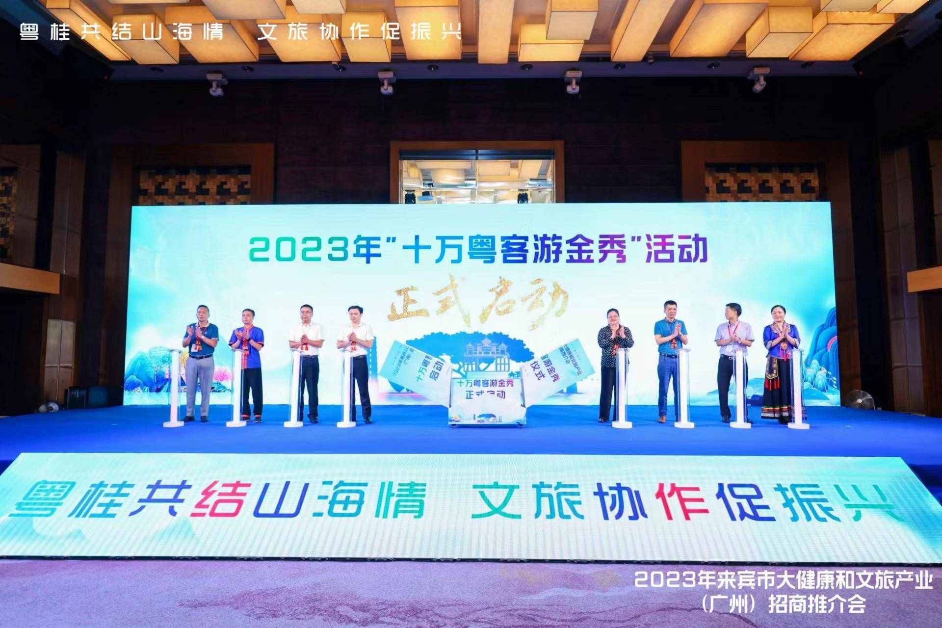 7月13日,2023年广西来宾市大健康和文旅产业招商宣传推介会在广州市举办。各界来宾、广州两地有关部门领导及广州市部分企业家、文旅企业代表、媒体代表等一百多人到会。