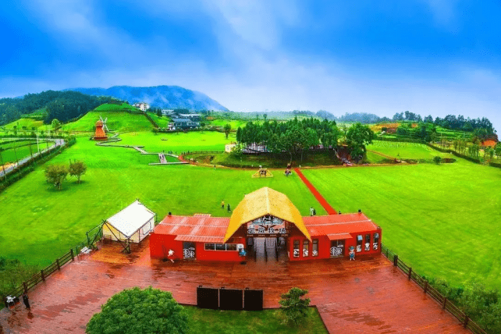 云岚牧场坐拥260亩大草原,松软草地、可爱奶牛、惊奇滑道、明亮风车、悠哉秋千……
