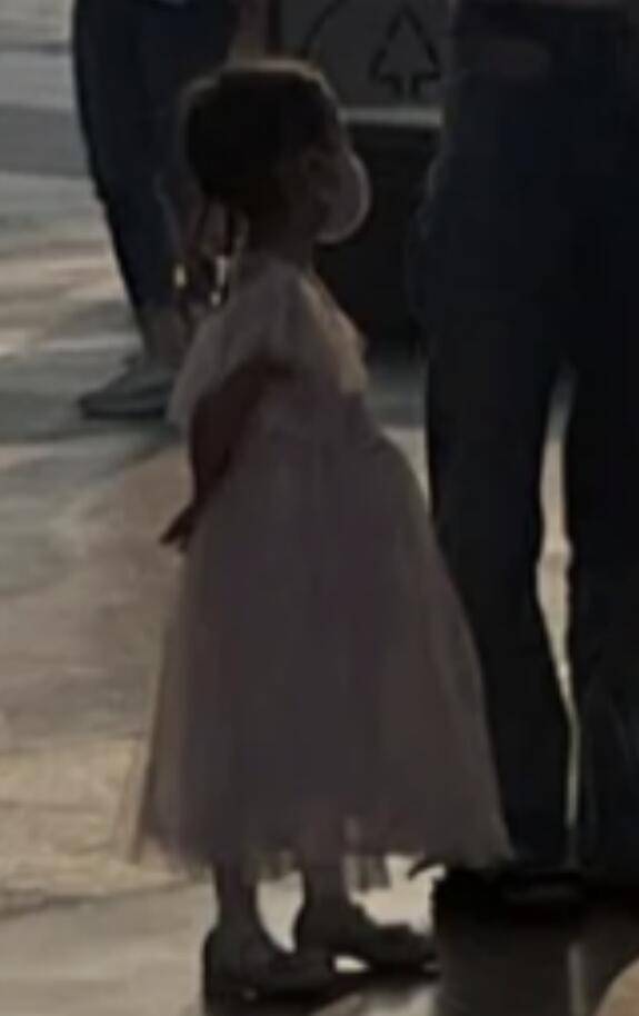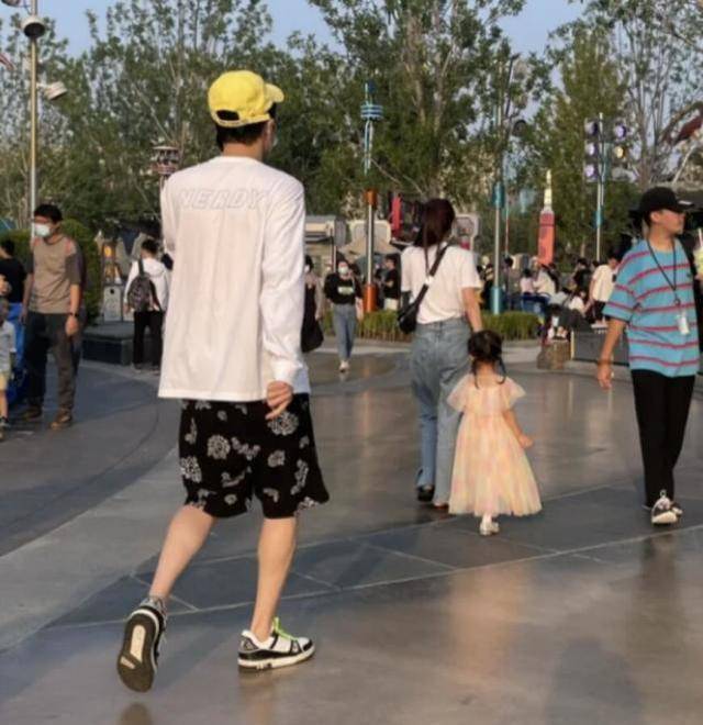颖儿和付辛博带着女儿小月亮一大早就去了,付辛博戴着绿色鸭舌帽,穿着白色T恤配短裤,3岁的小月亮扎着双马尾辫,穿着淡粉色公主裙,牵着爸爸的手往前走,颖儿穿着白色T恤配牛仔裤,紧跟在老公女儿身后。