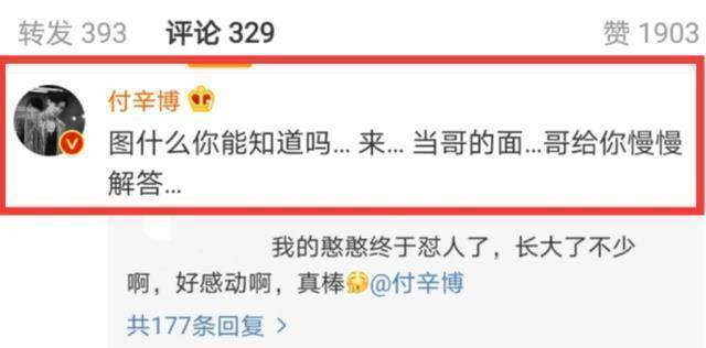 似乎在这段婚姻关系中,颖儿属于付出多的一方,颖儿被问:“美女你图什么”时,付辛博怒斥对方:“图什么你能知道吗,来,当哥的面,哥给你慢慢解答”。