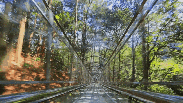 在旱滑道的滑道里从山顶向着山脚滑下