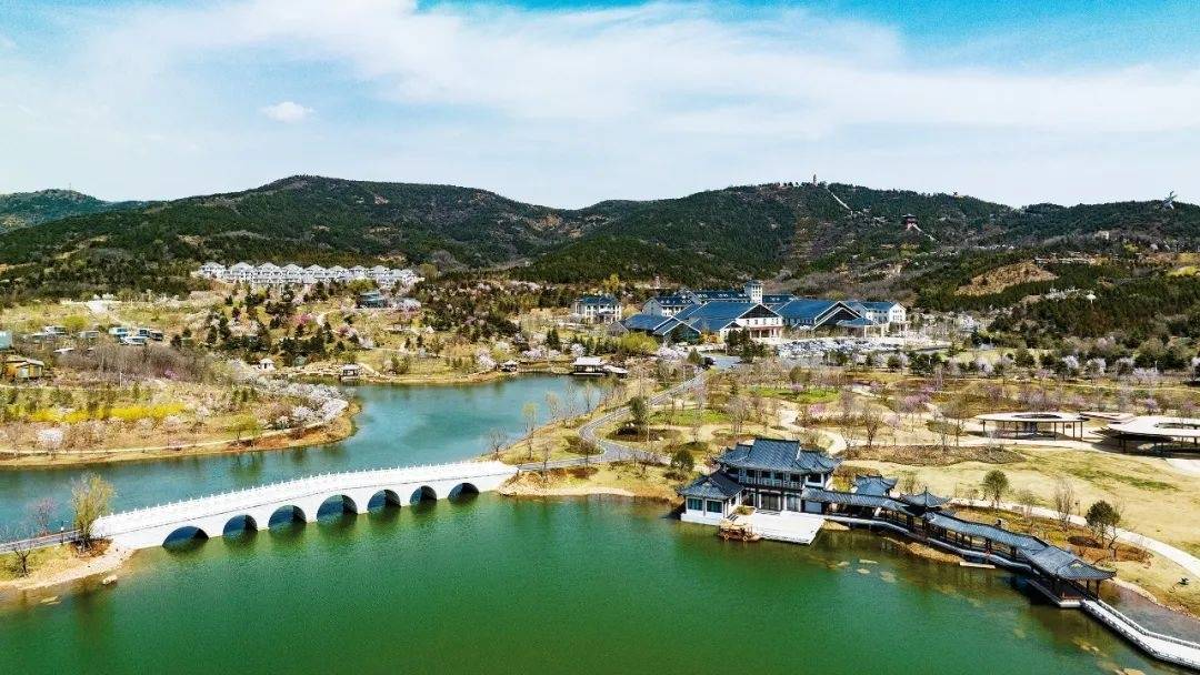 春日的龙马湖,月映桥、栖霞亭、廊桥水榭,充盈传统园林之美;花田、栈道、生态小岛,尽显自然野趣……