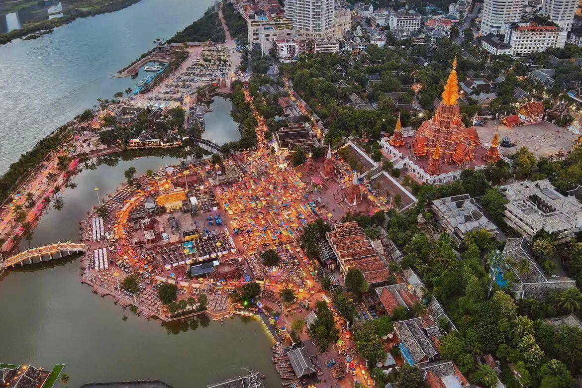 晚上,我们去了星光夜市,全国最大、最有特色的夜市之一。是西双版纳夜生活的标志性场景,也是城市形象的新地标。夜幕降临,数以万计的彩灯亮起,成为一条璀璨的星河,这或许就是“星空夜市”名字的由来。星空夜市汇集了众多东南亚美食。走在商店街里,我已经感到头晕目眩了。我只能看到大金塔和夜市之间的高桥。整个夜市共有大小剧场、演艺场所、舞台12个。六国风格丰富的当代歌舞和节日,极大地丰富了旅游体验,娱乐了人们。