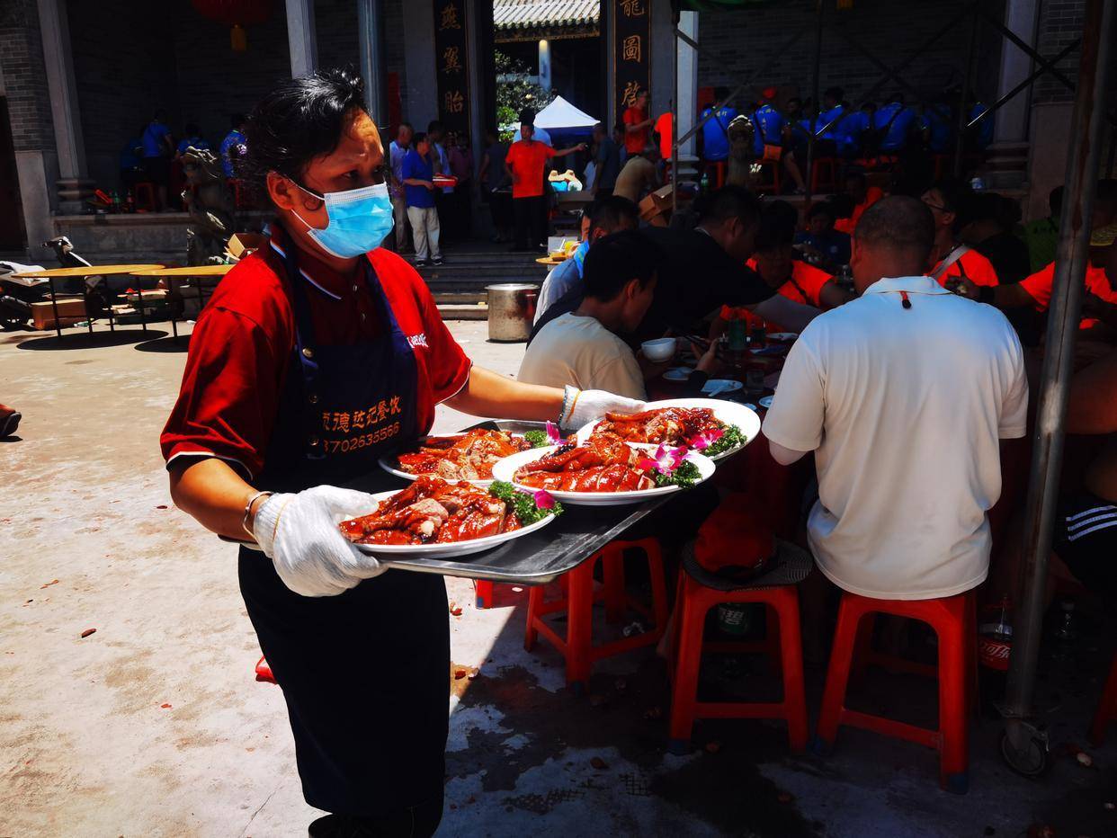 端午饭开始前,车陂村先进行了简单的祈福仪式,然后开始上菜。只见厨师端来一盘又一盘,有鱼、鸡、鹅、肉、鲍鱼等。-永恒和完美的完美。现场感觉很想吃“九大贵”。看到这里我不禁感叹:光看着就饿了!