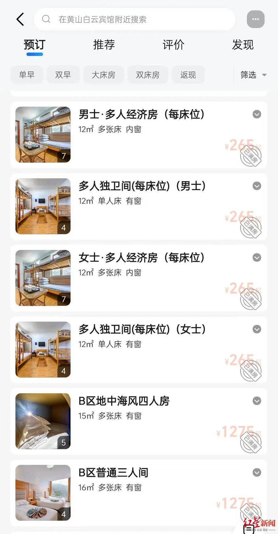 相关平台显示,白云宾馆3日晚两百多元的床位“已满房”