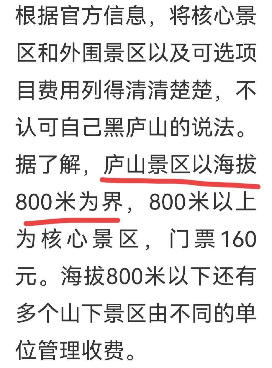 针对这一情况,庐山风景区工作人员表示,根据相关规定,庐山山顶景区海拔800米以上,仅需160元门票即可随意游览,而且申请范围以景区地图为准。海拔800米以下,山下景点众多,由不同单位管理、承载。为提升庐山旅游品质,大口景区自4月21日起免费开放。
