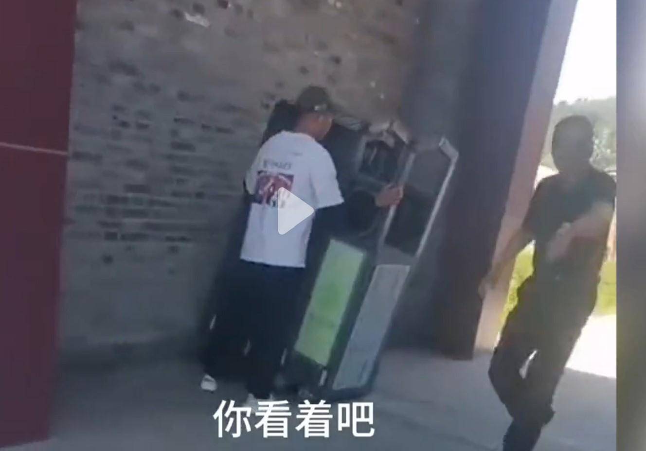 工作人员见大门被推倒,走过来问道:“这是你们的门吗?”