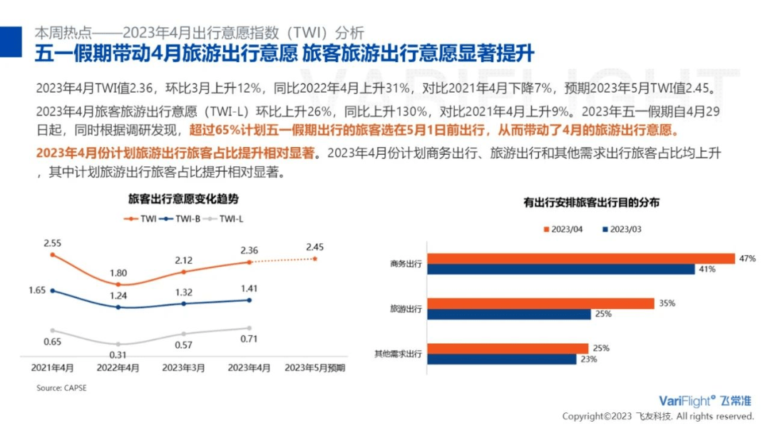 4月4日,飞常准大数据公布的周报则显示,五一假期带动4月旅游出行意愿,旅客旅游出行意愿显著提升。