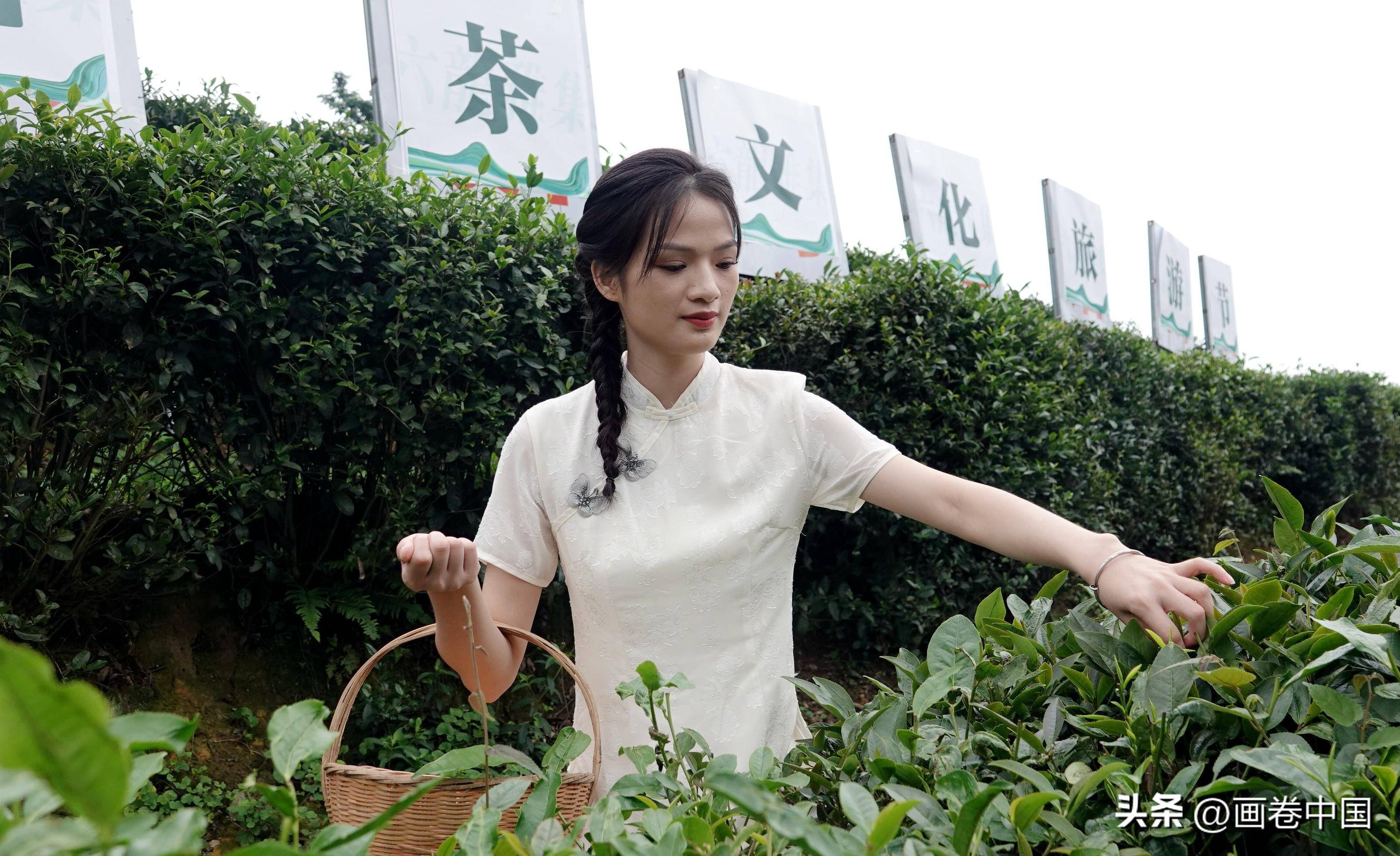 游客在广西南丹富含天然硒的六龙茶产业现代化示范区享受采茶乐趣。