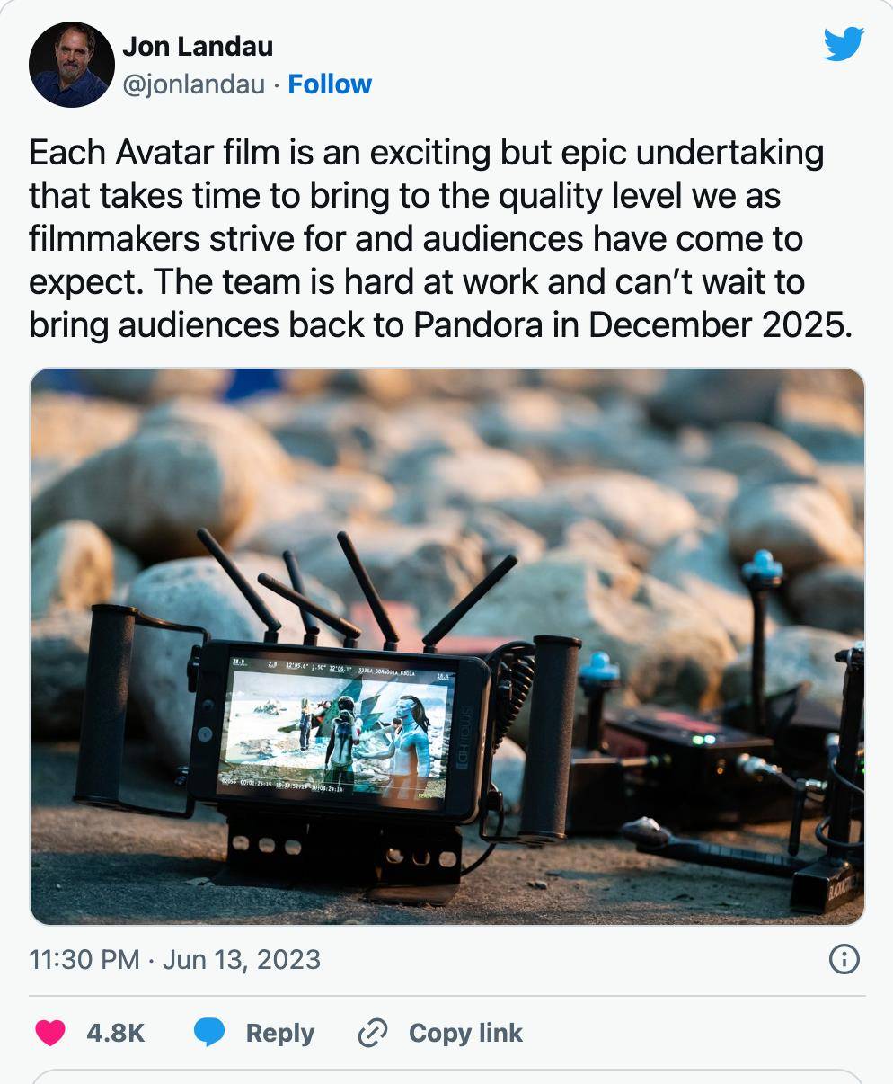 据《综艺》5月13日报道,受国外编剧工会持续罢工等因素影响,迪士尼对影片的上映档期进行了重大调整。迪士尼推迟了接下来三部《阿凡达》电影的上映,最后一部《阿凡达》将于2031年上映。此外,迪士尼宣布三部未命名的《星球大战》电影计划于2026年5月22日上映。分别于2026年5月18日和2027年5月17日上映,以及《海洋奇缘》真人电影和《伤侍3》电影。推出日期。