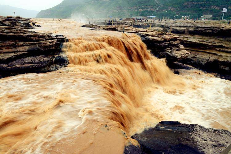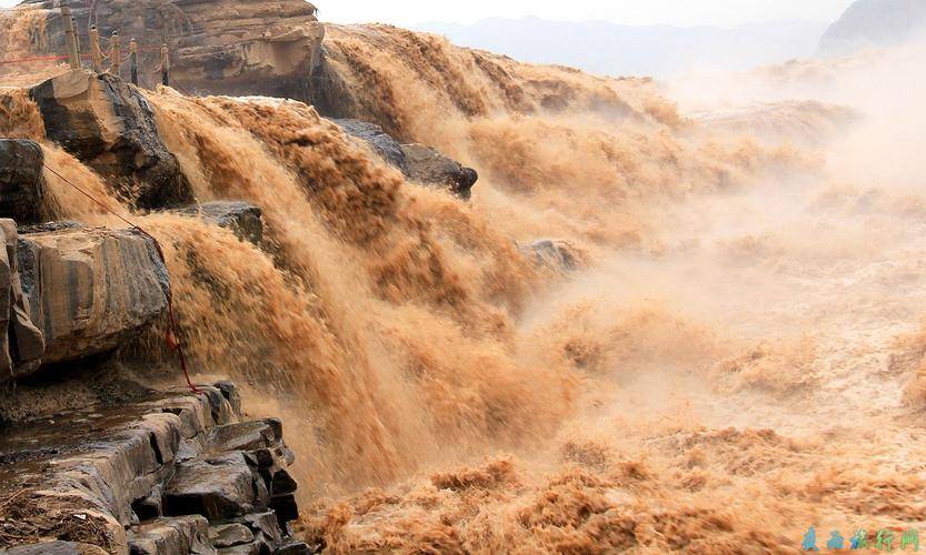 黄河奔流至此,两侧石壁陡峭,河口窄如壶口,故名壶口瀑布。瀑布上游黄河水面宽300米,不到500米的距离内被压缩至20-30米宽。每秒1000立方米的河水从20多米高的悬崖上流下来,形成“千里河”。黄河一锅酒收成。因此,瀑布里弥漫着黄雾,涛声震天。场面非常壮观、激动人心。有一种雄伟、磅礴的气势。最近几年。许多主要影视剧都来这里取景。