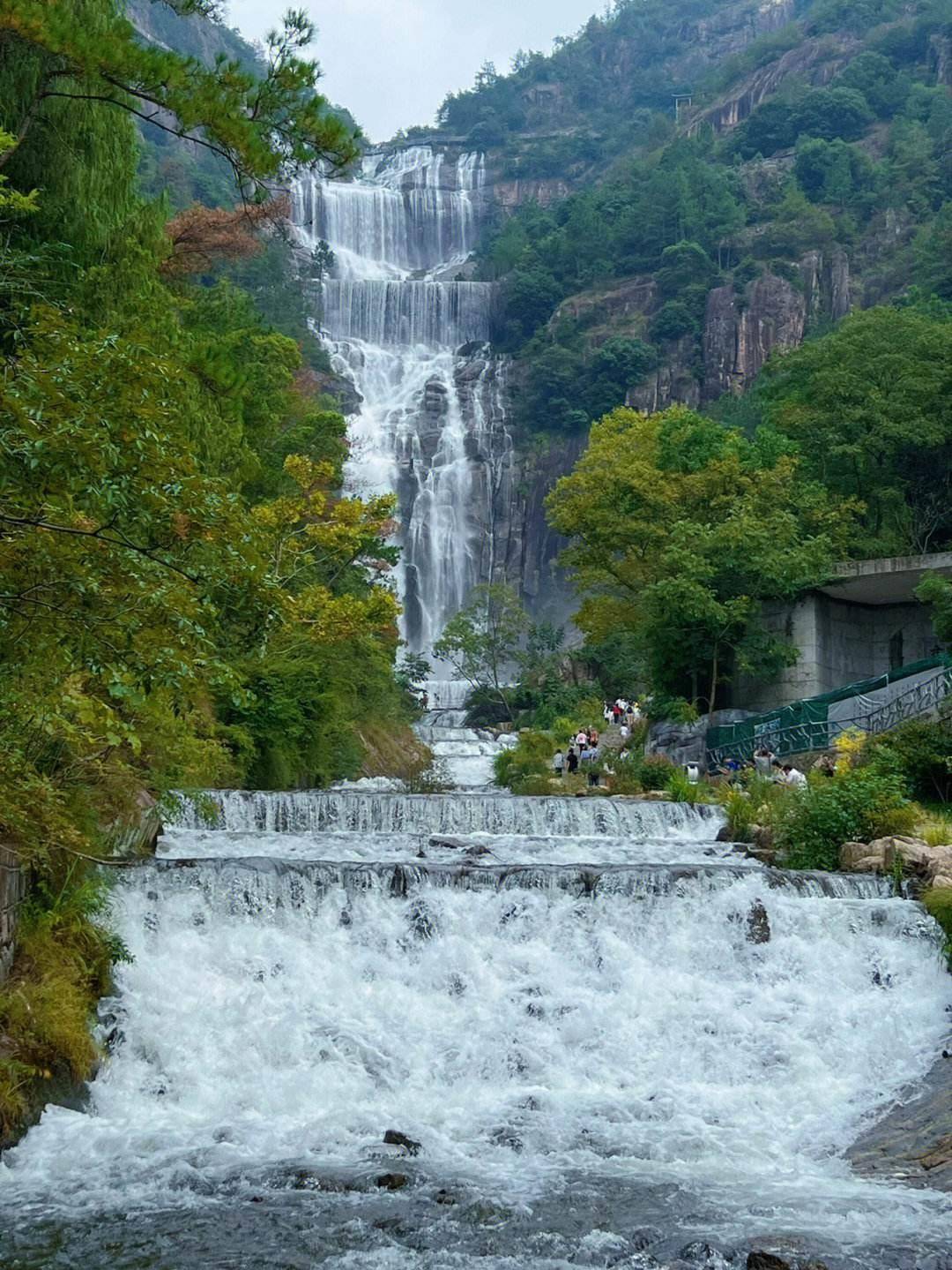 庐山瀑布主要由三叠泉瀑布、开仙瀑布、石门尖瀑布、黄龙潭瀑布、五龙潭瀑布组成。它被誉为我国十大最美瀑布之一。三叠泉瀑布的水从大月山流出,缓流一会,经过五老峰后,从北崖口挂在大盘石上,再流到另一块大盘石上,再流向另一处大盘石。一会儿。稍停片刻,又喷在第三块大岩石上,形成三道褶皱,故名三叠泉瀑布。开县瀑布在旱季变成涓涓细流,像一条线从悬崖顶垂下来;汛期,雨水充沛,溪流流量大增,瀑布的水如玉龙从天而降,银人倒挂,奔流而下。