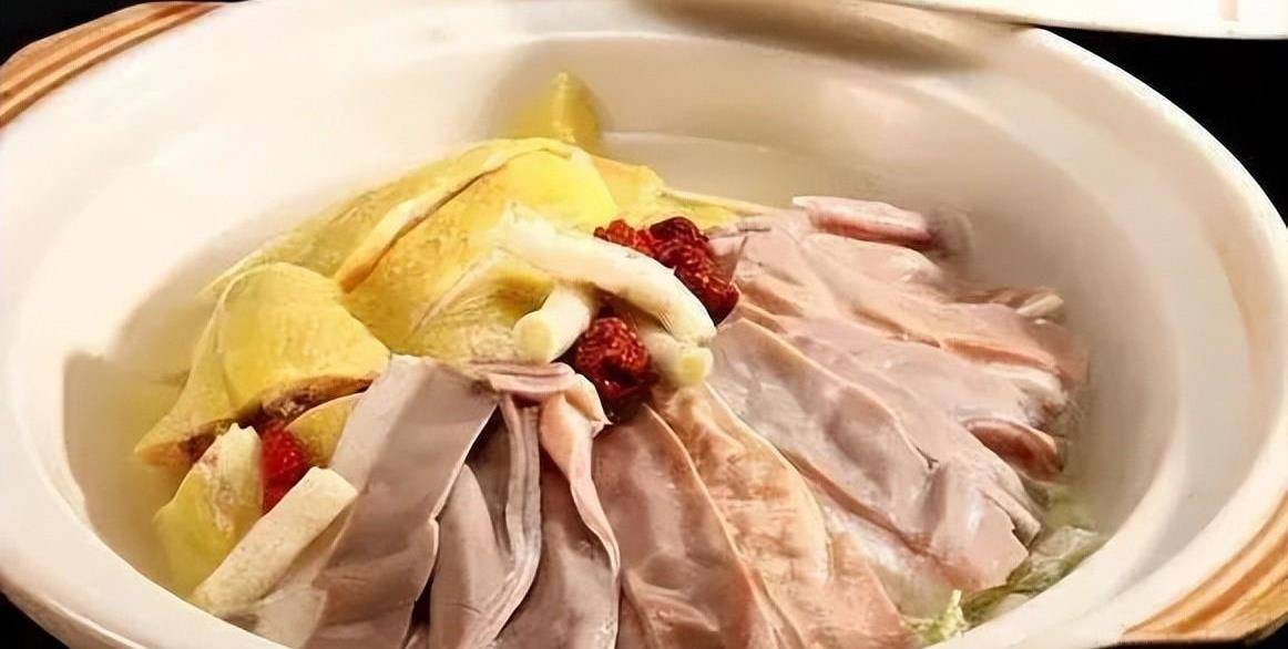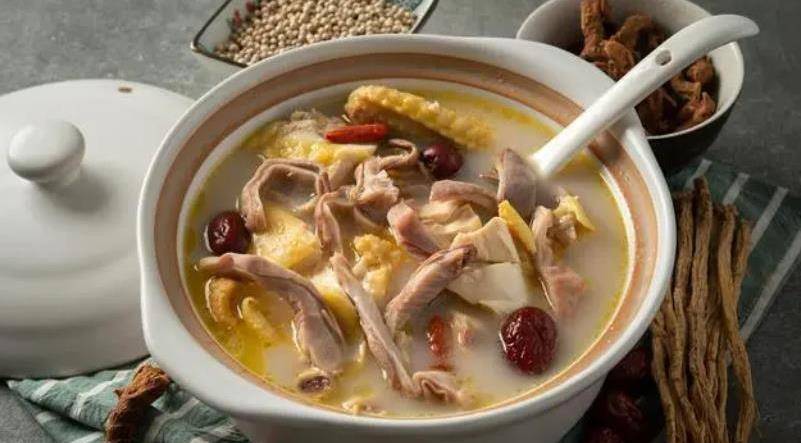 用料:猪肚一个,老母鸡一只或者半只,红枣、猪肚一个,鲜鸡一只(或半只),胡椒一30粒左右(体寒者要多放,体热者少放)、红枣十五粒,党参四支,玉竹一两,枸杞子适量,少许盐、料酒、鸡精、姜。