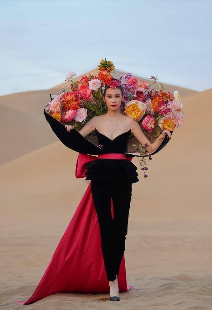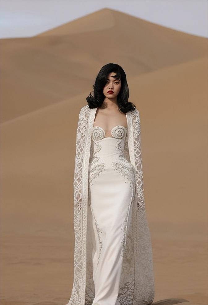 当然,陈采尼缺乏高定秀高层意识与他选择的节目有很大关系。他选择了敦煌,确实有我们的气质,但是天空黄沙的高级感其实和他高定秀的高级感是不一样的。很大。陈采尼选择了黄沙背景,太大了。