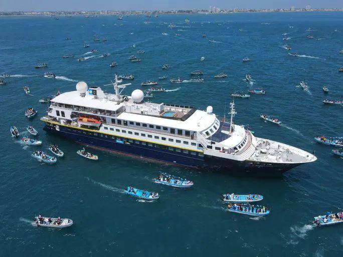 当地地理岛民II岛周围挤满了参加厄瓜多尔圣罗莎节祝福仪式的游客。
