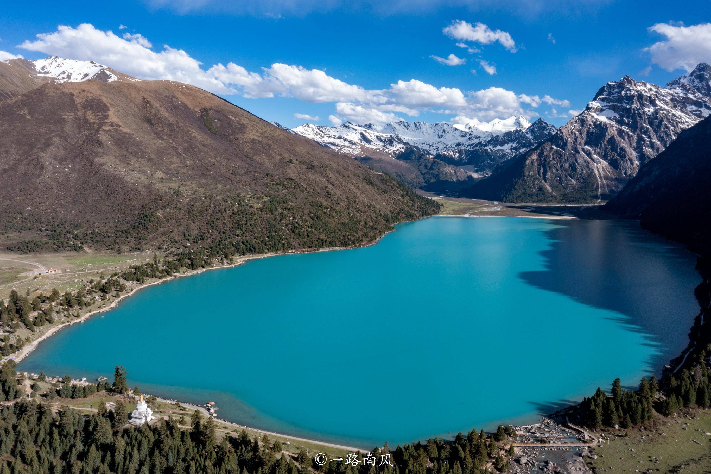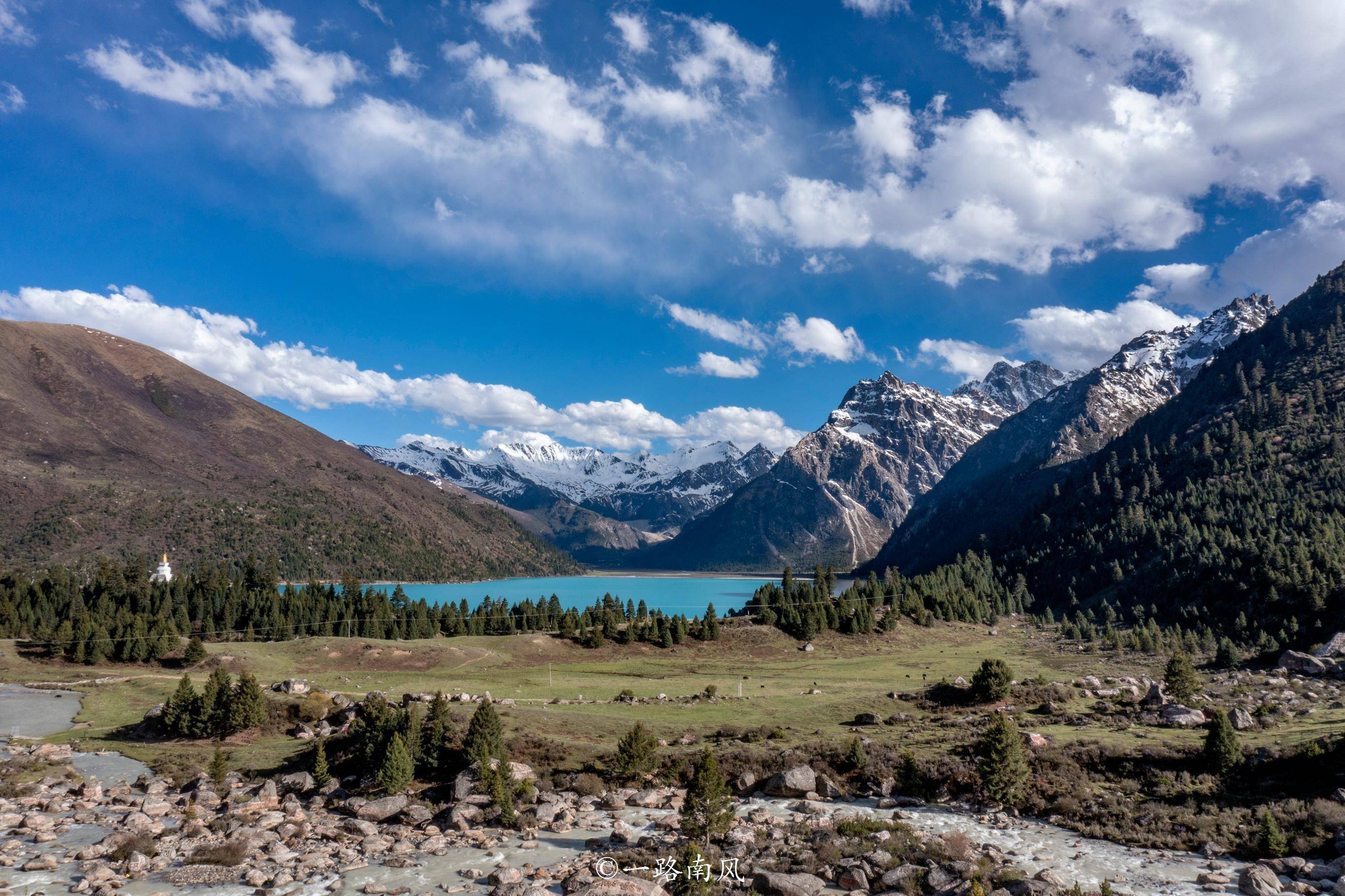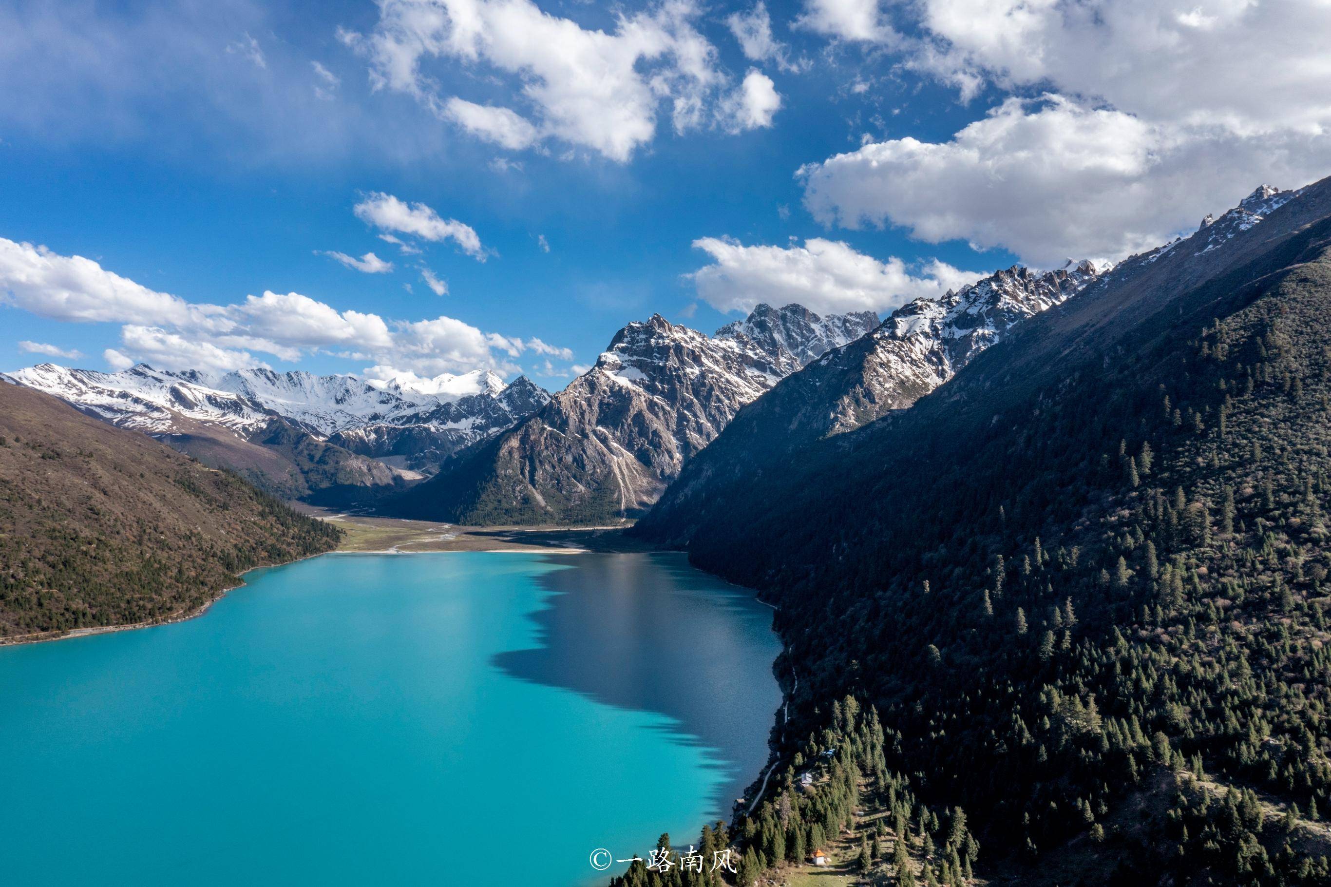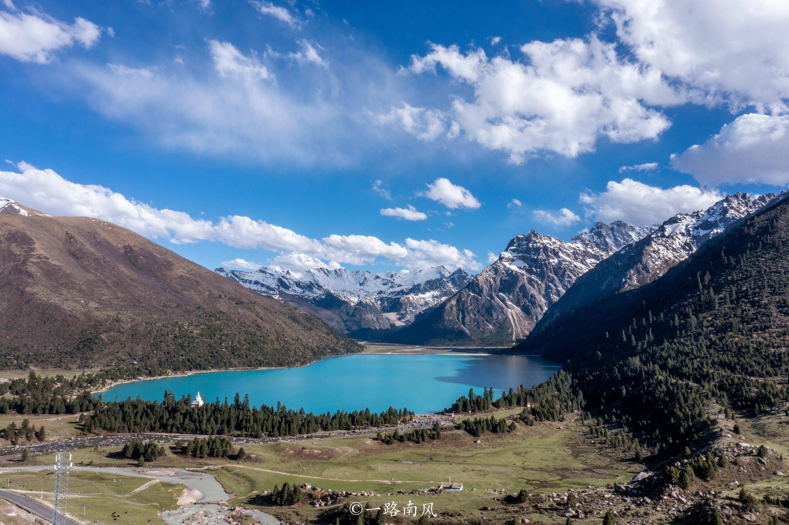上个月我和朋友一起去了昌都。回来的路上,离开江达县,经317、318路返回重庆,步行到德格县雀儿山脚下,发现了一个非常美丽的湖。湖中覆盖着针叶林,湖水呈翠绿色。湖边山峦连绵,南侧山峰白雪皑皑,像一滴巨大的绿色眼泪,又像一颗诱人的宝石。